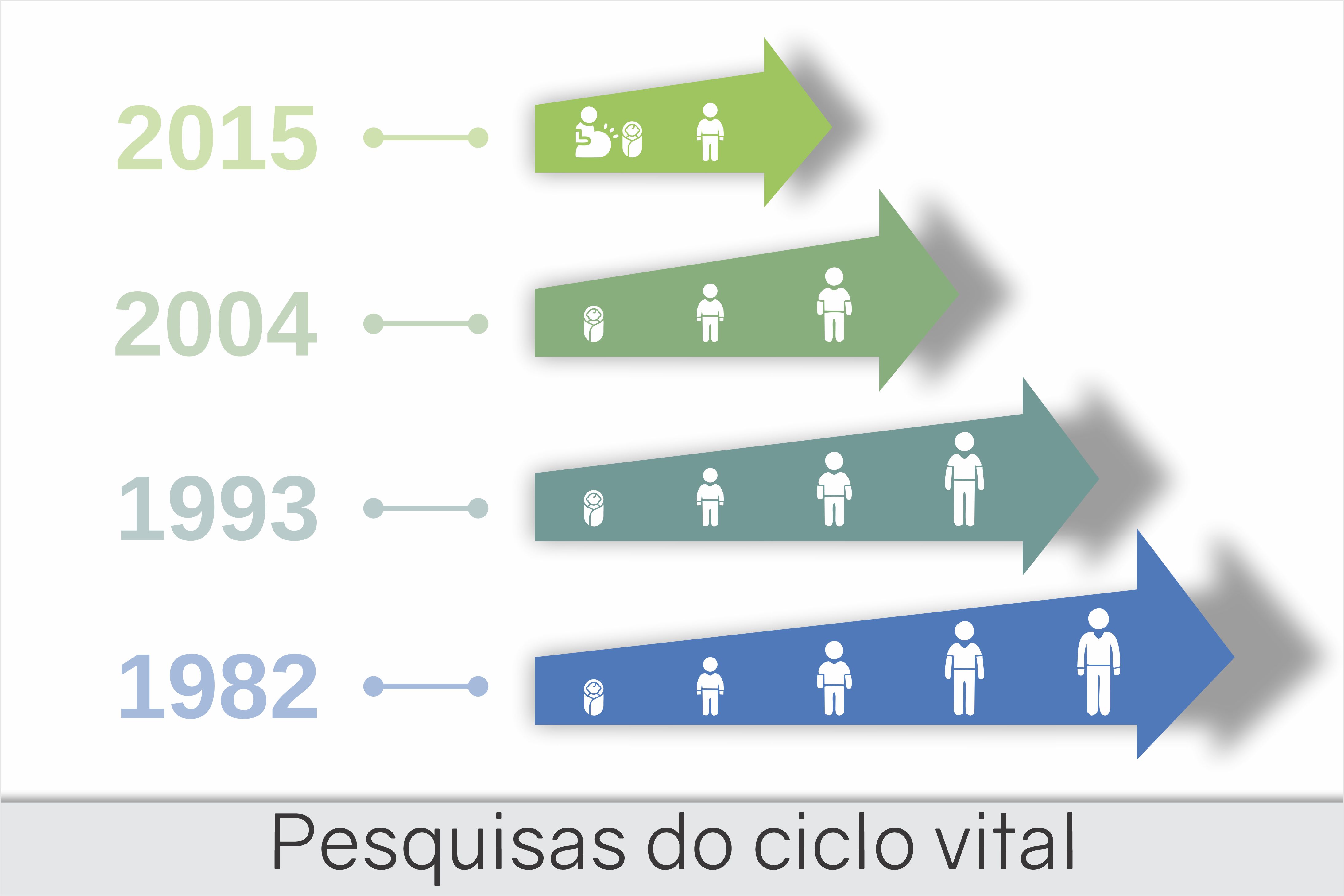 Nós trabalhamos com as Coortes de Nascimentos de Pelotas, no Brasil, as quais estão entre os maiores e mais longos estudos longitudinais no Sul Global.